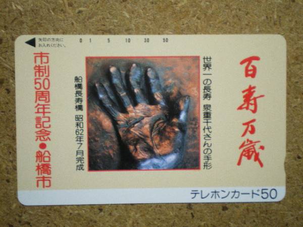 sono・110-27967 船橋市 泉重千代 手形 世界一の長寿 テレカ