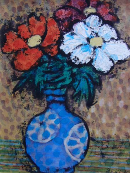 加藤世紀・Kato Seki,真作保証。国際美術家協会、名誉会員。日本美術家連盟会員、作品名「アネモネ」直筆サイン入りのミクストメディア(アクリル、オイルパステル等を混ぜ合わせたもの)作品はフィキサチーフ(定着液)をかけてありますので、色落ちや汚れを防止してあります。絵画の状態は良好、裏面にも、直筆サイン、タイトルの記アリ、新品額付です。絵画サイズ、 F6号です、 40,9cm×31,8cm 、額枠は黒色、マット付、ガラス付の新品です。≪高級額装付です、新品、薄いカラーパール色・金枠付き、ガラス、マット付きです、≫作品の裏面にも、直筆サイン、題名、記載有りで価値のある作品ですのでよろしくお願い致します。【加藤世紀略歴 1940  藤野町に生まれる 1981  サロンデボザール展特選賞 1984  日本水彩画展連続入選~1990(上野都美術館) 1985  神奈川水彩画展入選 1987  鳥取県智頭町版絵コンクール大賞 1989  箱根彫刻の森美術館ガラスビンデザインコンクール優秀賞 1992 多摩秀作展入選、水彩連盟展連続入選 1993 さがみ美術展神奈川新聞社賞 1994 さがみ美術展会長賞、千葉県大原美術展入選 1996 オーストリア1000年祭芸術の家ジョイント展 朝日新聞社朝日チューリップ展KLLオランダ航空賞 1997 アジア、アフリカ、ラテンアメリカ交流美術展 1999 韓国国立美術館600年記念展 トルコ、デールメンデレ町企画加藤世紀展 2000 多摩信用金庫企画個展、銀座一丁目画廊3人展 2001 神奈川県展入選 2008 芸術出版社賞 2014 相模原市議会長賞、その他、多数、受賞、】 岡本太郎より絶賛される、