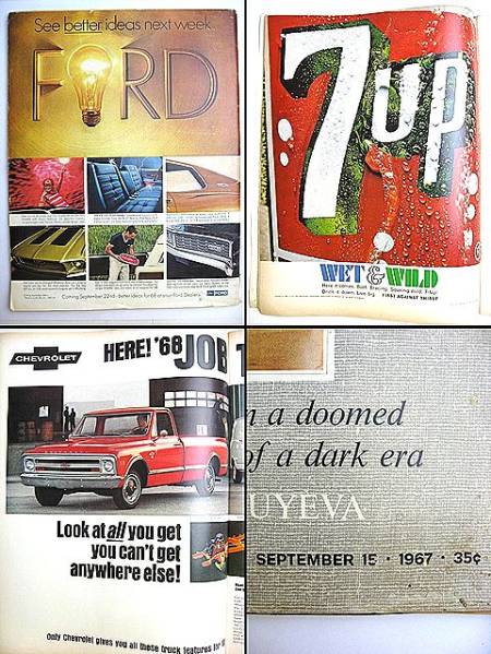 【ユニロイヤル社 ナウガハイド!イームズチェアにも使用されていることで有名なNAUGAHYDEのキャラクター!1967年製9月15日号 LIFE誌 ビンテージ本です!当時のNAUGAの広告が1ページだけ載っています!切抜きでは無く、当時の本のままですので大変希少です!英語説明でその他にも当時の広告など、とても詳しく載っています!今となっては、とても希少な参考資料になると思います。中々市場には出てこない一冊です!白黒+カラー144ページで見所満載ですのでおススメ本です!】