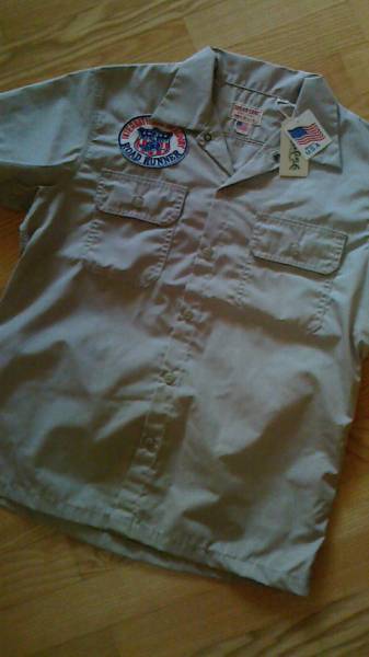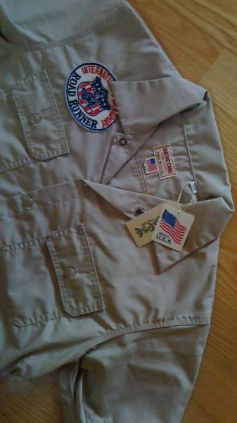 ーン ロードランナー」半袖ワークシャツです。 綿60%ポリエステル40%の割合でアウトドアウェアでよく使われている最強な丈夫な生地です。縫製も3本針巻き縫いで丈夫な作りになっております。 Made in U.S.Aも買って損なし! 胸と背中にワッペン付き。