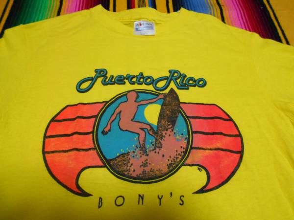 80年代オールドサーフらしいオールドサーフライド グラフィック PUERTORICO BONY'S クラシックロゴの入り方が極めて良い感じ