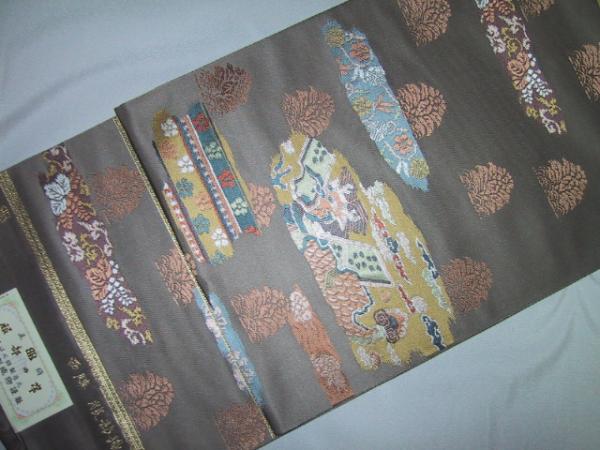 裂--3本から選べます--。パンフレットつきの販売袋帯と違い、1本1本が名門機屋の200有余年の歴史の重さをうけついで、織られています。今回はその織屋の中でも、個性的な柄(上から順に、灰、薄焦げ茶濃い青灰地)帯を3本から1本選んでいただきたく出品いたしました。1本のお値段です。3本ともご入用のかたはいないと思いますが、3本ご入用の方は、『入用数1x落札金額+入用数2x123000円』でお譲りできます。新品み仕立て品。絹100% 金属糸等使用
