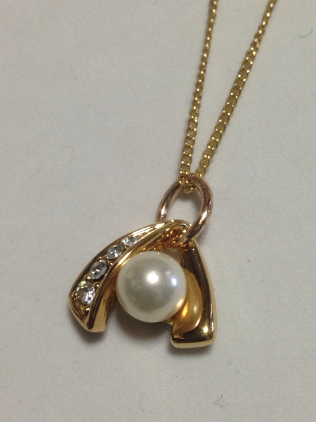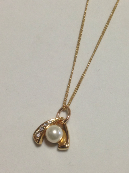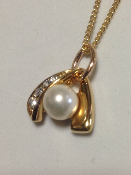 パールとジルコニアのモダンなデザインのペンダントネックレスです、パールは直径8ミリです、長さ は41センチです ★ 送料は120です