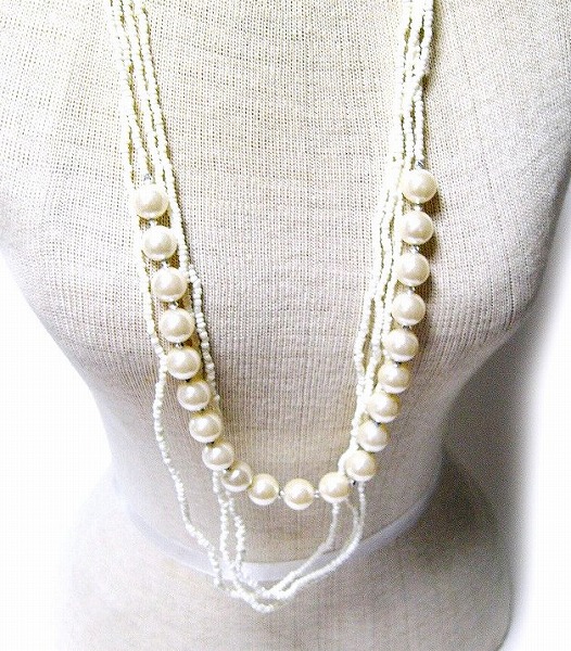 4連パールビーズロングネックレス●真珠ジュエリーアクセサリー