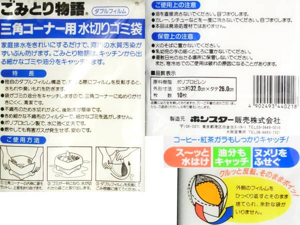 ★★★★即決価格でご落札は送料無料★★★★ 税込新品 ごみとり物語 三角コーナー用水切りゴミ袋 ダブルフィルム 70枚セット(10枚入り×7個) 送料600円~ | ||||||||||||||||||||||