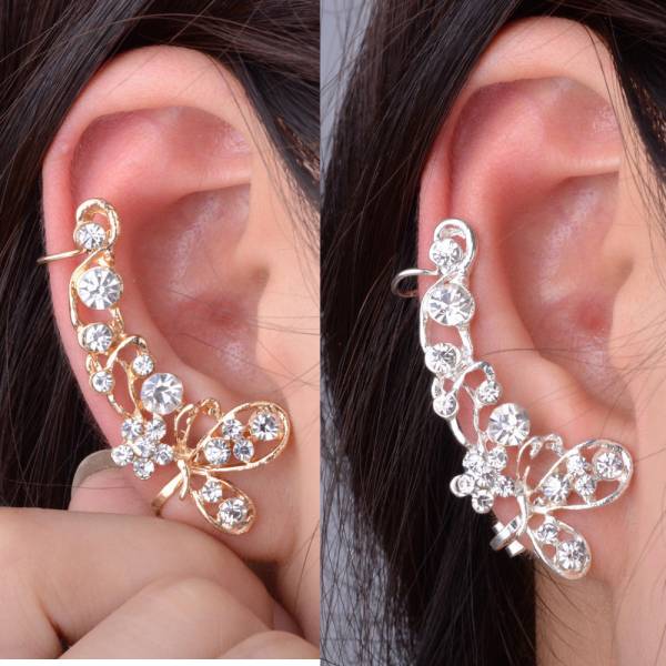 キラキラをちりばめた花びらのフラワーカフピアス / ゴールド