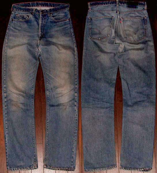 70'sの505 66前期です。復刻、レプリカではありません。『ディテール紹介』フロントトップボタン裏の刻印5、パッチなし、赤タブ有り。裾はオリジナルチェーンステッチ。ジッパーはタロン42、バックポケット裏、コインポケット裏シングルステッチ。『状態』リペア=股に小さな物。その他=スレ、キズなどUSED感があります。生地はしっかりしており、ヴィンテージとして良いコンディションです。『色落ち、特徴など』全体にシャープな縦落ちが走り、66らしい良い雰囲気です。505は細身のストレートですので、ジャストで穿いて頂くと、スッキリとした非常に良いシルエットです。レングスがかなり長いので、長身の方にもお奨めです。