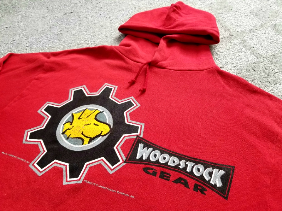 良好 80s~ USA製 JERZEES WOODSTOCK プリントスウェットパーカー 赤 M アメリカ製 スヌーピー ビンテージ ジャージーズ 80年代 snoopy