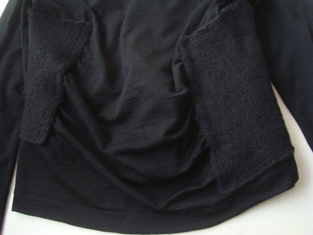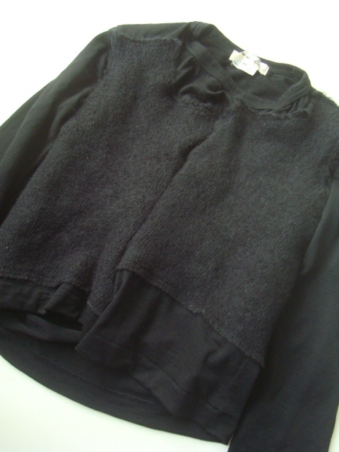 ・2種類の全く表情の違うニットを使用しハイゲージにミドルゲージを貼り付けることで計算されたバランス、個性的なシルエットが雰囲気抜群でとてもお洒落なセーターになります♪♪