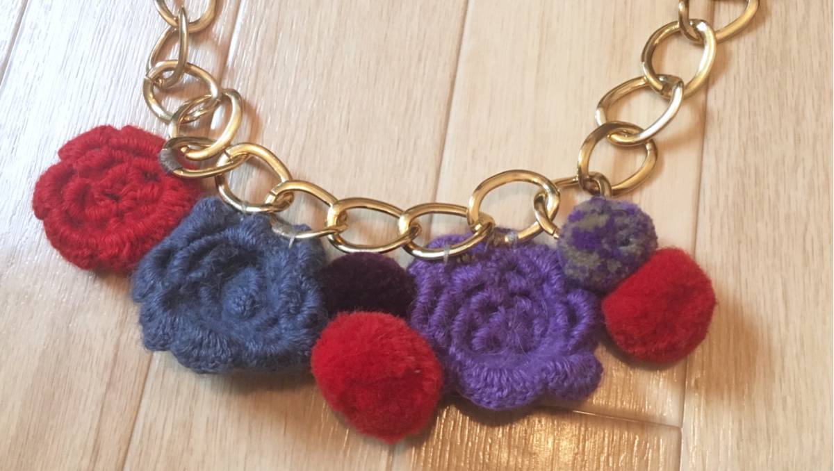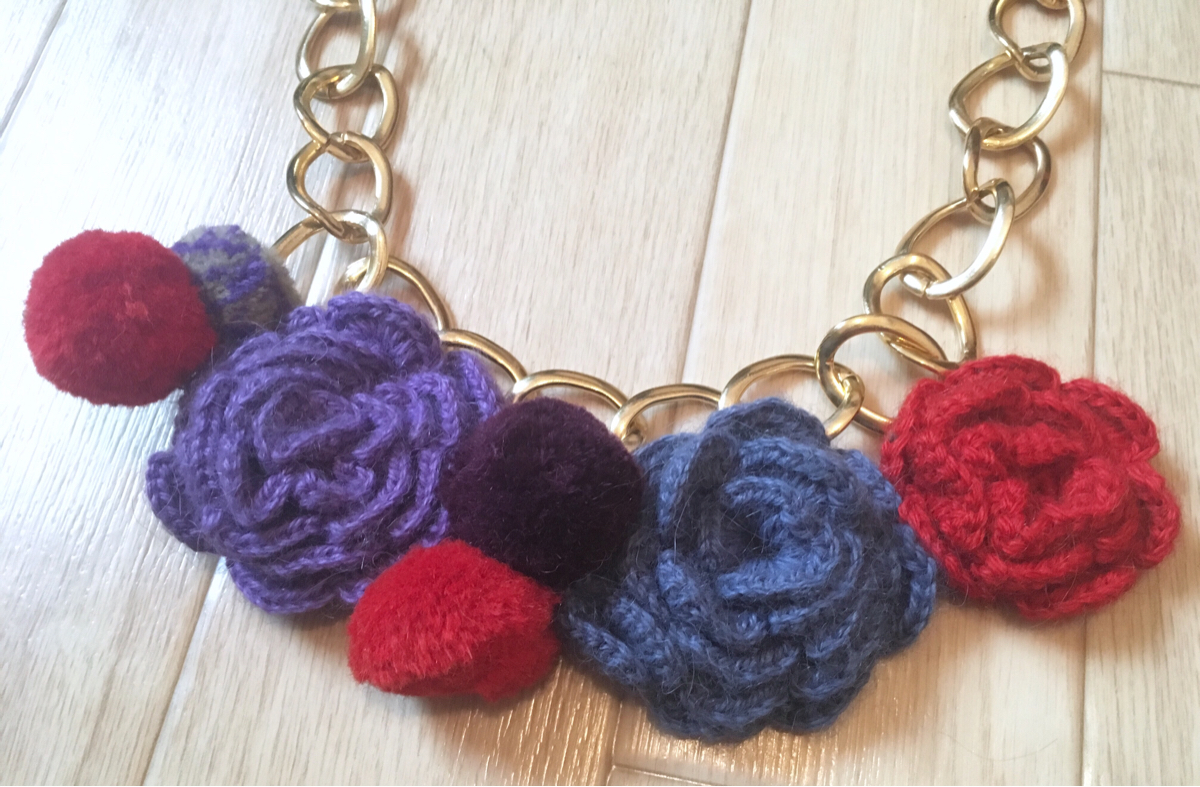 トップのバラやポンポンのコサージュも、アンデス原産の高級素材のアルパカを用いて作られています。