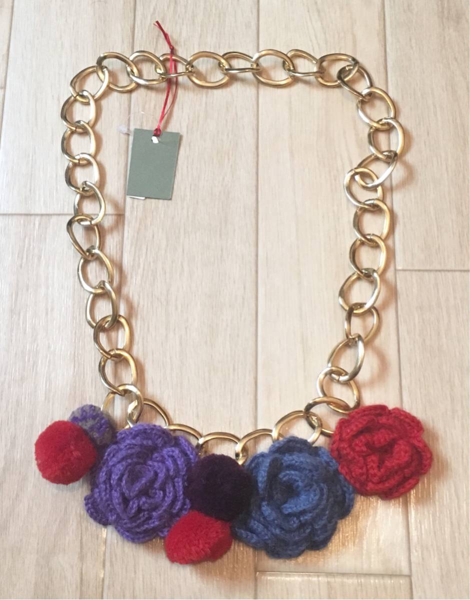大振りなメタルのリングチェーンに、アルパカ素材を掛け合わせることで、新しいのにどこか懐かしい雰囲気も漂わせ、アーティストのセンスが前面に出ているアイテムかと存じます。