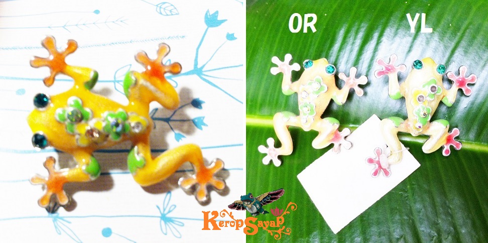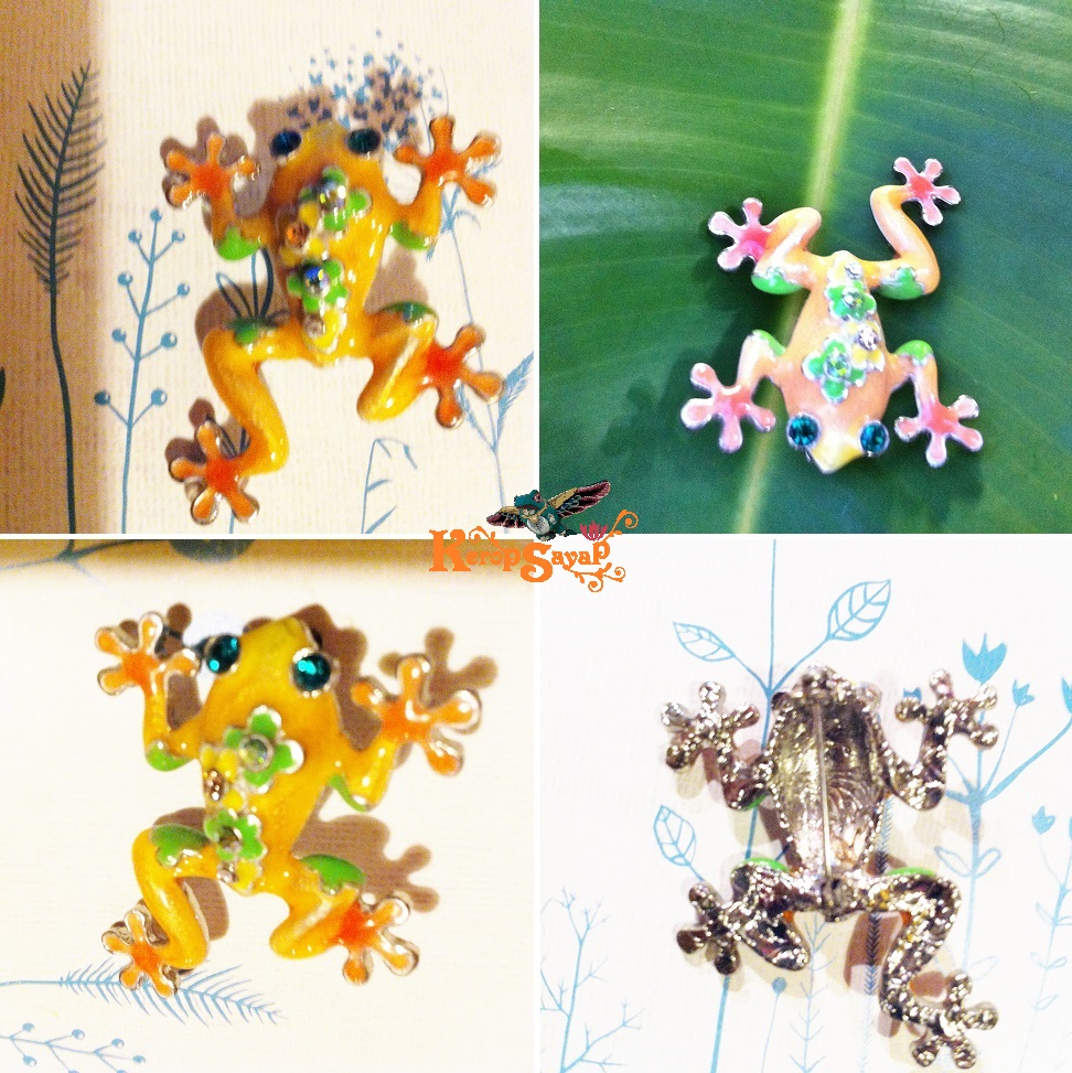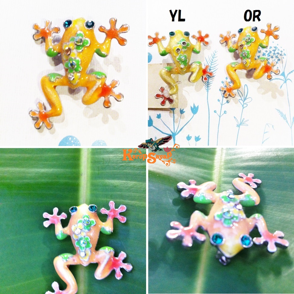 七宝焼き風ラインストーン+お花柄蛙ブローチORオレンジ カエルかえるフロッグFrog アニマル雑貨 レアもの珍しいカエルグッズ