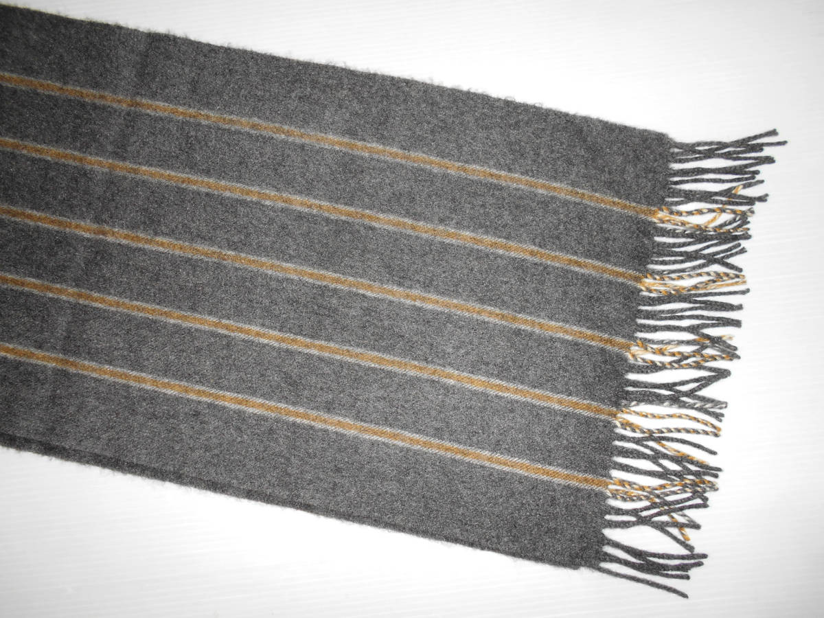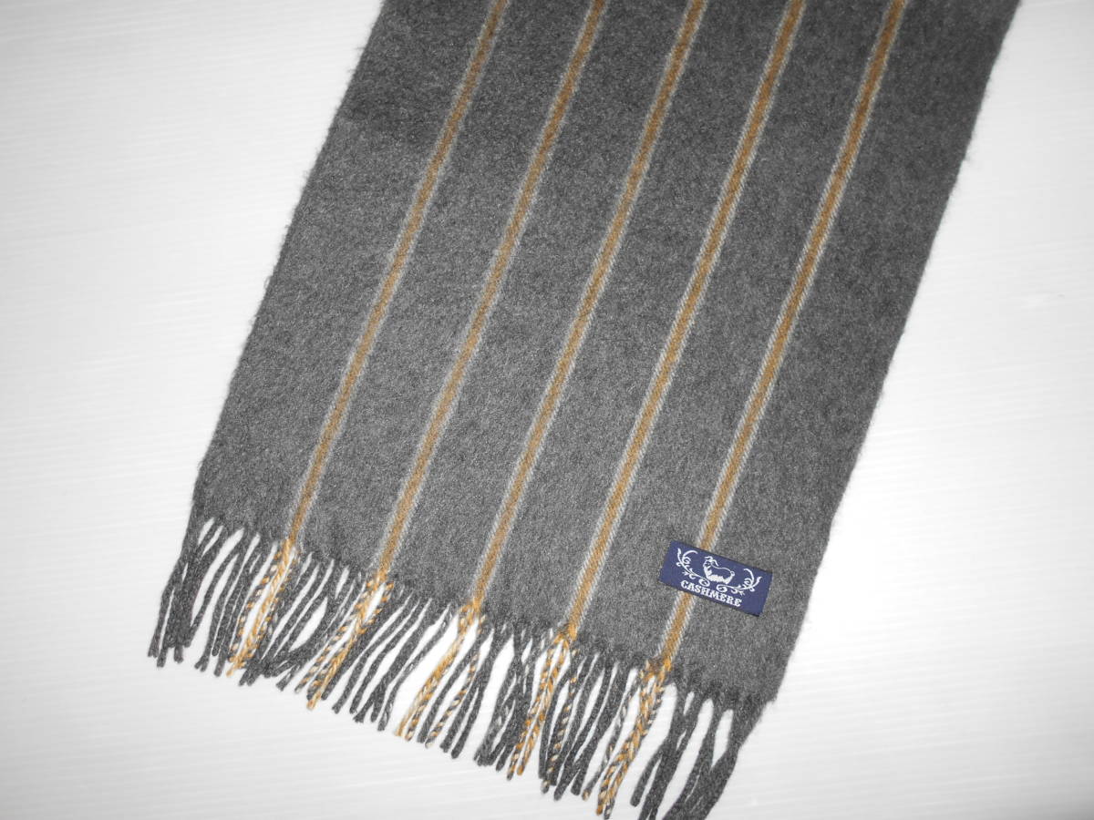 カシミヤのマフラー ストライプ柄 グレー系 です。 素材はカシミヤ です。 色はグレー系です。