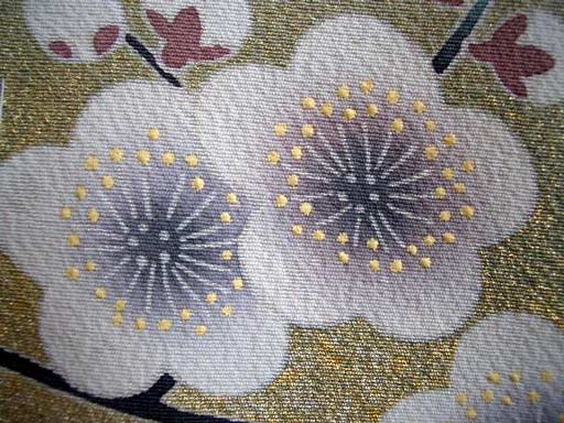 ◆ 細かいおしべまで描かれた梅の花。 細かな手描き友禅で描かれている。