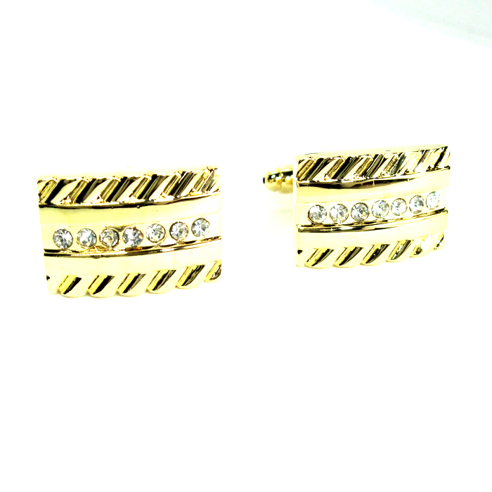 カフス カフリンクス ゴールドxラインストーン 専用PUレザーBOX付き ECF-5111 最後の1点