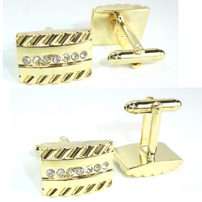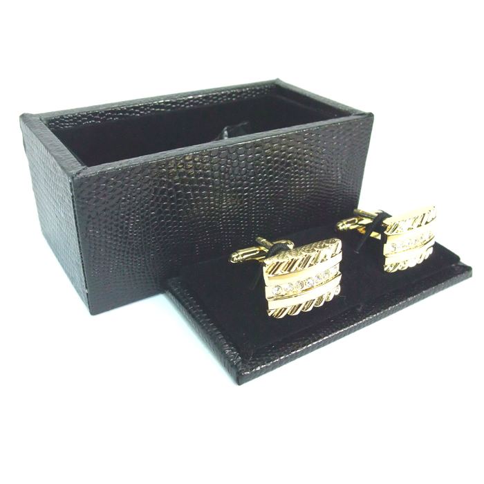 カフス カフリンクス ゴールドxラインストーン 専用PUレザーBOX付き ECF-5111 最後の1点 値下げ!
