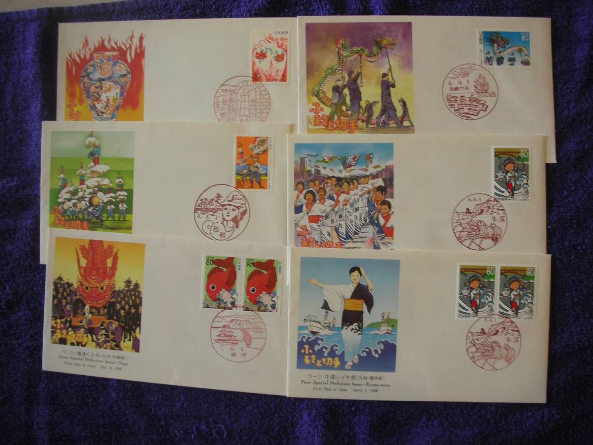 初日カバー FDC ふるさと切手各種 80円貼り 6通 各地風景印(写真参照) 格安