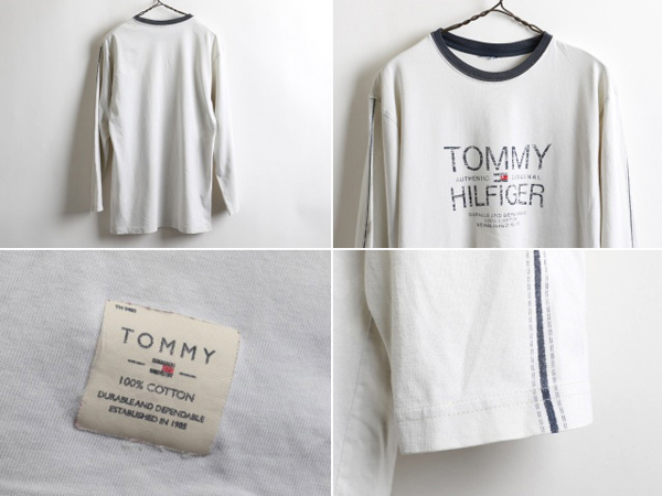 商品名 | ■トミーヒルフィガーTOMMY HILFIGER 袖プリント入りデカロゴ長袖Tシャツ(メンズ M程)ロンT |