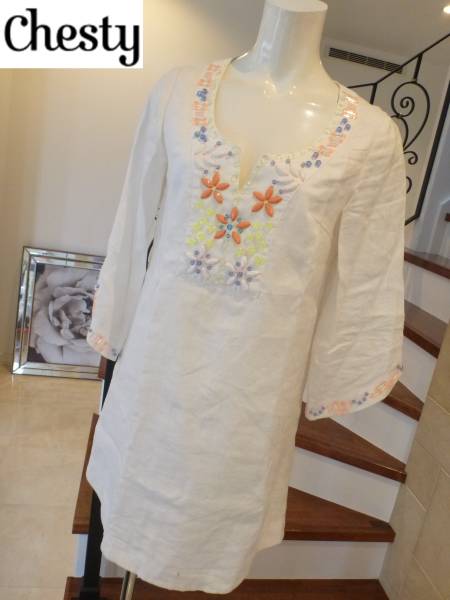美品 Chesty(チェスティ)カラフルビジュー 白 ワンピース 0