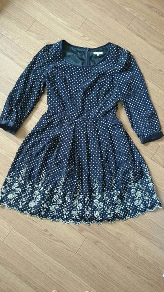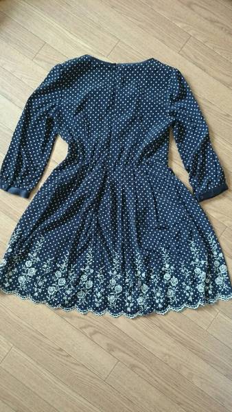 レストローズのワンピース、新品です。とても女性らしい素敵なお洋服です。スカート裾にはお花柄の細やかな刺繍が施されてあります。