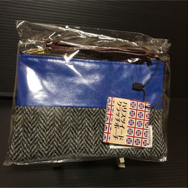 ハリスツイード クラッチポーチ 青 たて11cm よこ16.5cm