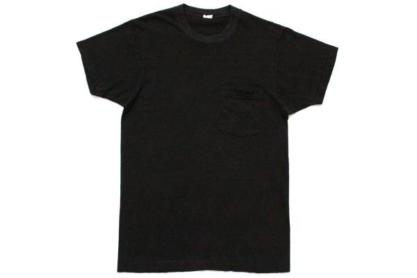 黒★70's B.V.D 耳付き コットン100% ポケットTシャツ L ビンテージ ポケT USA 古着 BVD