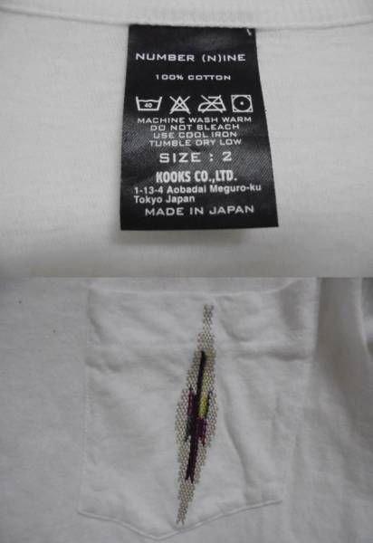 即決 ナンバーナイン 05AW THS期 オルテガ刺繍 ポケットTシャツ 2 白