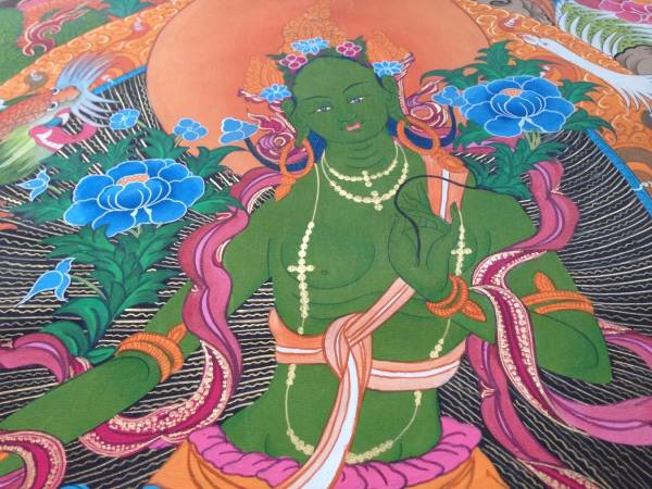 卍西蔵密教 純金 『肉筆 多羅菩薩 細密画 』 女尊 仏画 仏教 | ||||