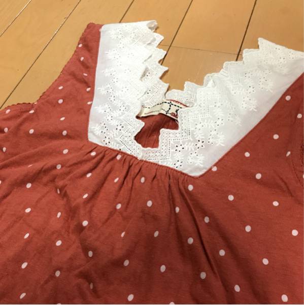 ◆ナチュラルなリネン混素材のノースリーブカットソー♪胸元ピンタック♪裾2段フリル♪ネック周りのスカラップレースや少しAラインになっているデザインが可愛い