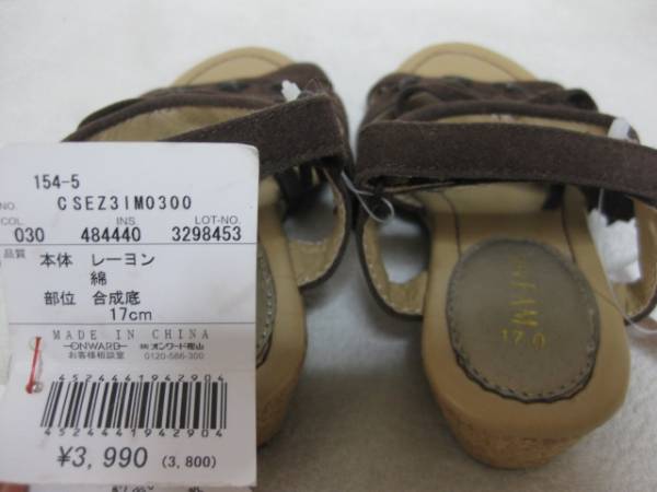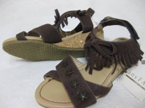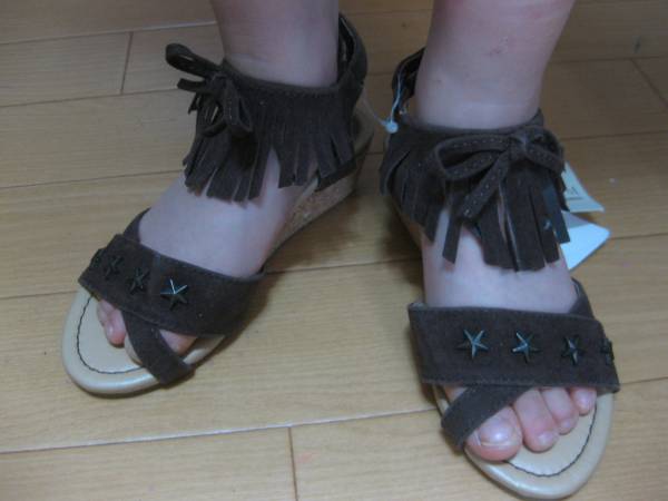 新品 ¥3990 組曲 anyFAM 17cm ヒール フリンジ ベルクロ スタッズ サンダル 子供用 女の子 ブラウン 茶色 双子 ペア