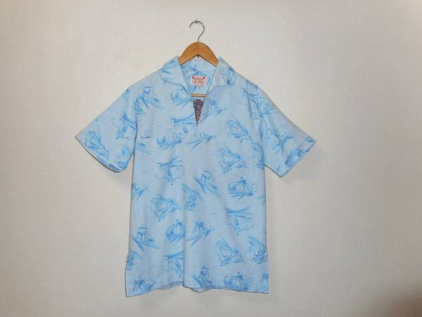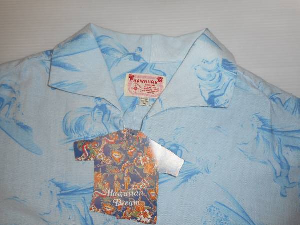 未使用?★ DENIME ドゥニーム サーフ柄 コットン アロハシャツ M 水色です。オリゾンティ 中国製 正規品です。素材はコットン100%です。品質表記は切れております。