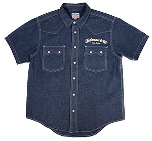 チェーン刺繍/半袖/デニム/ウエスタンシャツ