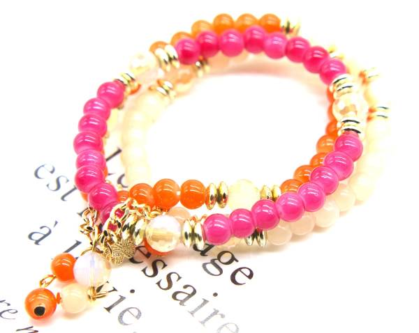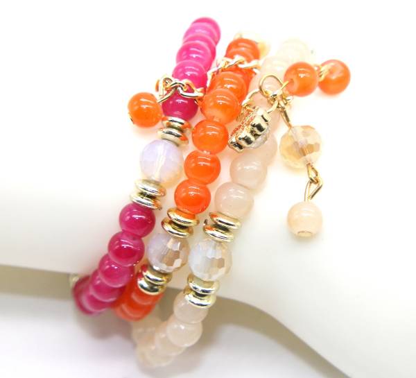 新品 激安 限定品 かわいい おしゃれ 人気 ブレスレット バングル ビーズ 3連 クリア ゴールド オレンジ ピンク プレゼント 誕生日 記念日