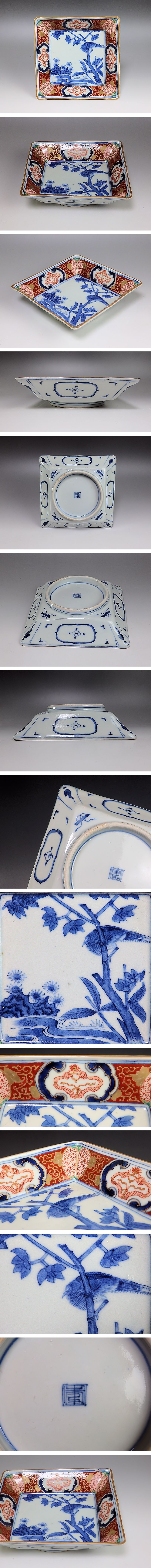 ★華心★  XXa 古伊万里 色絵 染付 団龍に花鳥紋の図 角皿 額皿