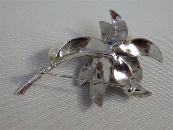 素材:淡水真珠・シルバー925   サイズ(cm):縦×横:3.0×5.0 後ろピン金具状態:良好   NY現地販売価格:$75