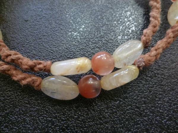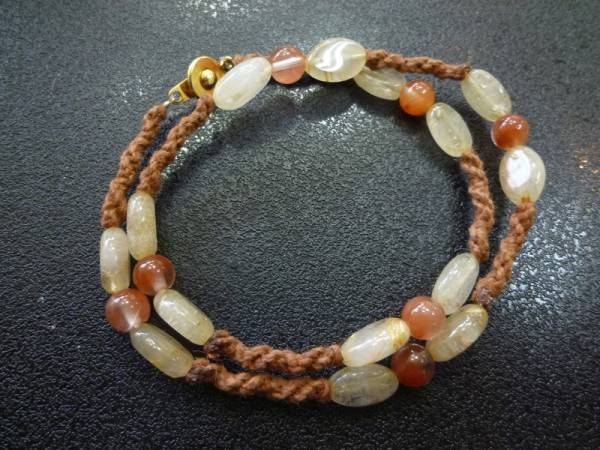 ゴールドルチルクォーツ レッドガーデンクォーツ 手編み2連ブレスレット