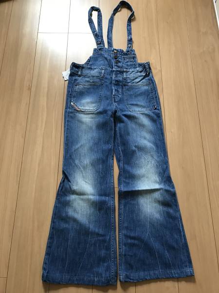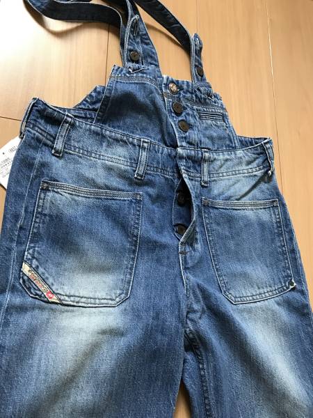 新品 サイズはXSです。カラーはデニムカラーです。ダメージ加工のあるオーバーオールジーンズです。ポケットはフロントに3つ(1つは小さなポケット)バックに2つです。ウエスト81cm腰回り91cm全長104cm(12cmはウエストより上)股下70cmです。紐は片側70-74cm ボタンが2つで調節できます。紐幅は2.8cmです。購入価格は37800円でした。
