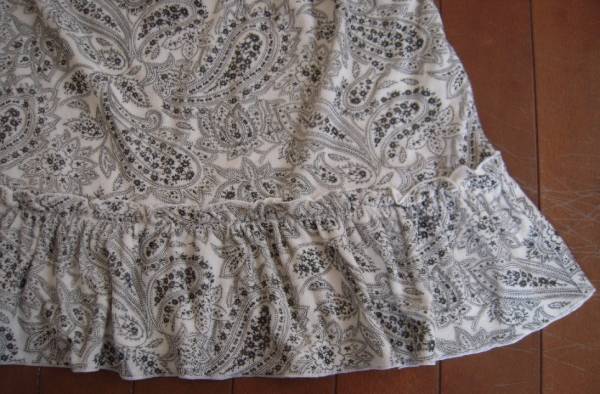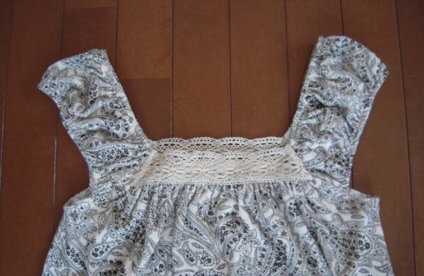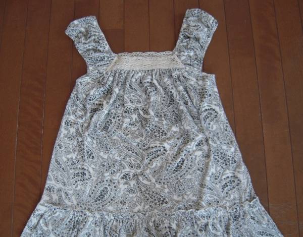 ペーズリー柄の涼しげなかわいいチュニックです。胸のレースと裾のフリフリがかわいいですよ。