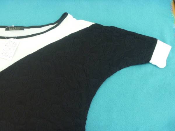 ●◇レディース  カットソー 7分袖?【Janiss】 白×黒   未使用  タグ付き