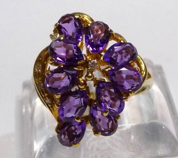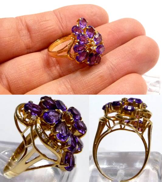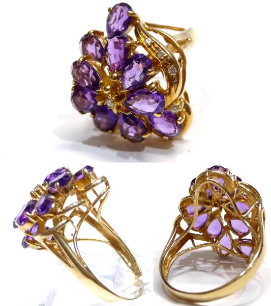 K18 アメジスト&ダイヤ デザインリング