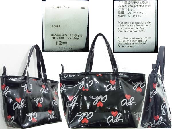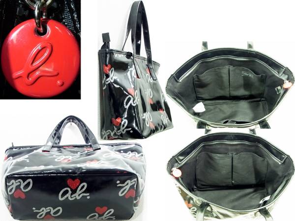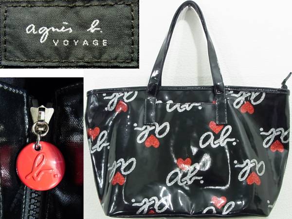★★★★即決価格でご落札は送料無料★★★★ agnes b. VOYAGE ブラックビニールトートバッグ アニエスベー ボヤージュ 総ロゴモノグラム ラメハート&ラメロゴトート ブラック×レッド×シルバー ファスナーバッグ ハンドバッグ日本製 abハート柄 サブバッグ 送料660円~ | ||||||||||||||||||||||||||