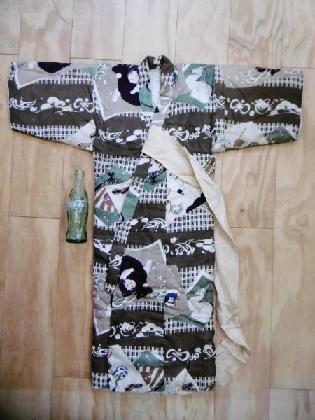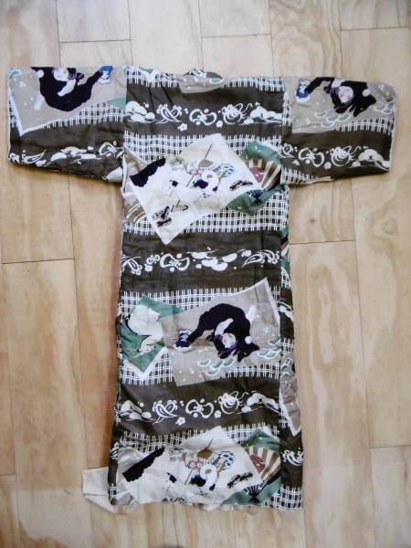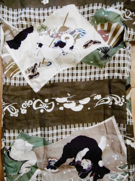 | 古い★花咲爺・金太郎・日本昔ばなし・変わり図柄着物綿入れ古布★ | |