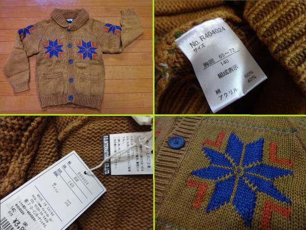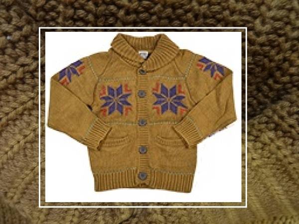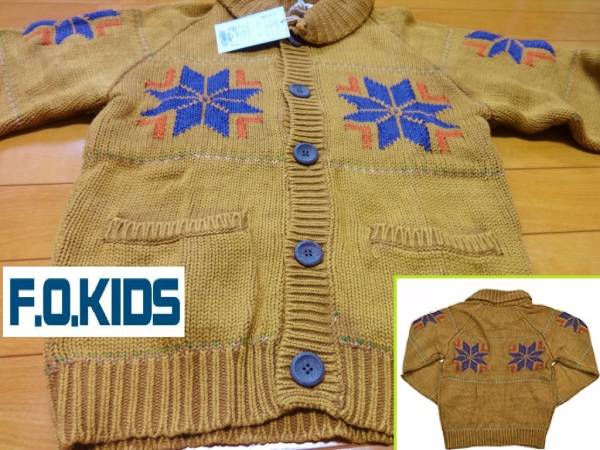 ■未使用新品 F、O、KIDS のカウチンジャケットです。からし色に近い茶色 カナダ系ネイティブ柄。