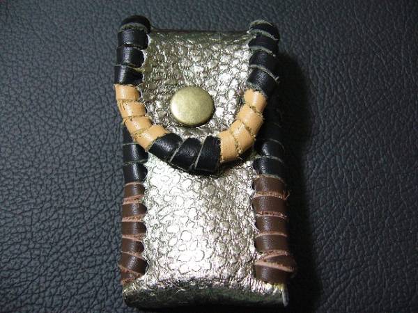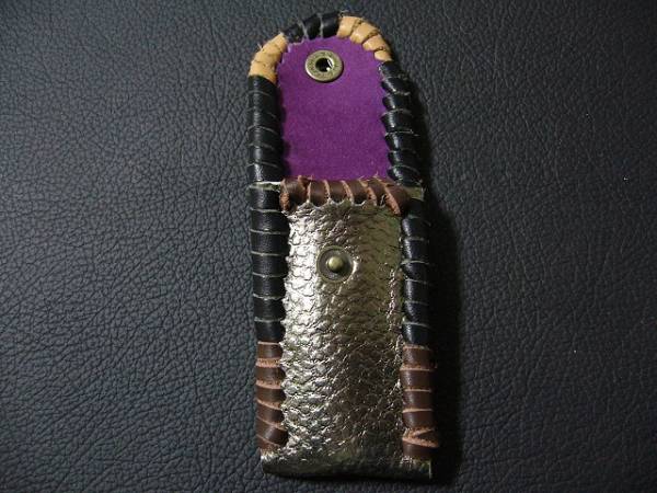パール発色のあるゴールドレザーを表面に使用。内側は、パープルのスエードレザーを使用しました。