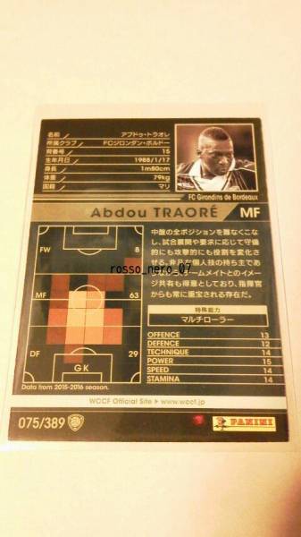 ☆WCCF2016-2017☆16-17☆075☆白☆アブドゥ・トラオレ☆FCジロンダン・ボルドー☆Abdou Traore☆FC Girondins de Bordeaux☆