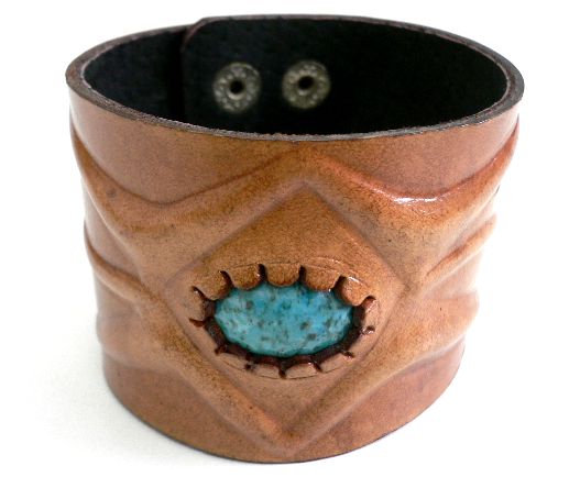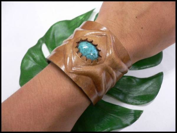 牛革イミテーションターコイズ付レザー ブレス ブラウン/革製品ALL20%OFF