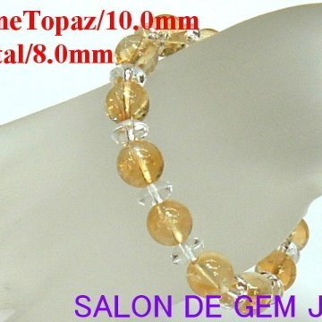 【大粒】【金運:財運】【高級天然シトリントパーズ/天然クリスタル 風水・開運ブレスレット】10.0mm/16cm強