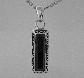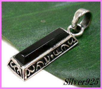 シルバー925銀の天然石オニキス スティック アラベスク フレーム ペンダント