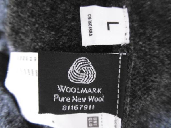 ★ ユニクロ ★ ウールラウンドネックカーディガン L チャコールグレー