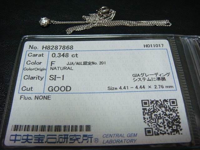 ご覧頂きましてありがとうございます! 可愛いダイヤモンドプチペンダントです。チェーンの長さは約40cmです。 ダイヤは0,348カラットです。カラーはF クラリティーはSI-1 カットはGOODです。 新品のケースに入れてお届けいたします。 追加画像がありますのでパソコンでご確認ください。 宝石との出会いは一期一会です。『いいな』と思ったら是非、身につけてあげて下さい。きっと宝石も喜ぶことでしょう! 宝石は決して貴女を裏切りません。身につけた貴女を守ってくれることでしょう。 いつも頑張っている自分へのご褒美にいかがでしょうか? 良いものをひとつお持ち下さい。一生物のジュエリーとなります。 画像での判断は難しいと思いますが、落札後の返品、クレーム等の無きよう、ご自分の自己責任においてご入札下さい。 モニター、パソコン、カメラによって色や感じ方が変わりますのでご注意下さい。 商品についてはコレクター、質屋さん、お客様の委託品が中心ですので、ご質問の答えが遅くなる事がありますがご了承下さい。 商品説明につきましてはすべてをお知らせできませんので、質問にてお願いいたします。 基本的にはUSED品ですので、その点を十分にご理解の上ご入札下さい。 途中で出品を取り下げる場合もありますがご了承下さい。 尚、トラブル回避の為、申し訳ございませんが、新規の方及び評価によってはこちらで入札を削除させていただく場合もございますが、ご理解下さい。 メールの確認は夜になりますのでご連絡が遅くなることもありますがご了承願います。 品物にも人と同じように『こころ』があると思います。喜んでいただけることが私にとっても品物にとっても一番良いことだと思います。 『落札したけど気に入らなかった』ということが無いように十分にお考えになってからご入札下さい。 発送は宅配便を予定しております。また発送には2,3日かかる場合もございますが、ご了承願います。 お互いに気持ちよい取引のため、落札後3日以内のご連絡、5日以内のご入金頂けない場合は申し訳ございませんが取り消しさせていただきます。 落札金額より僅かですが『子ども虐待防止 オレンジリボン運動』へ寄付をさせていただきますがご了承お願いいたします。 | |